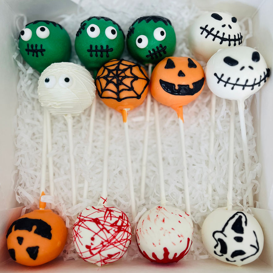 Spooky box comes with assorted Halloween designs of your favorite cake pops!